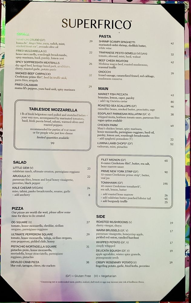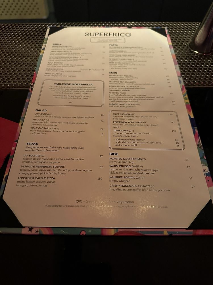 Superfrico, located on Las Vegas Blvd, is a trendy Italian pizza bar that offers a unique dining experience. With a range of vegan options, full bar service, and live music, Superfrico is perfect for a fun night out with friends or a special dinner. Customers rave about the homemade mozzarella, pasta dishes, and unique desserts like the Banana Walnut Tartufo. The ambiance is described as eclectic, with psychedelic decor and entertaining performances throughout the meal. The attentive staff and impeccable service enhance the overall dining experience. For a memorable night filled with delicious food, lively entertainment, and great vibes, Superfrico is a must-visit spot in Las Vegas. Make sure to book a reservation in advance to ensure a table at this popular hotspot.